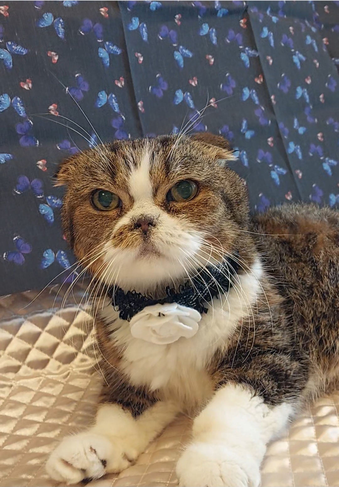 2024年8月10日に判明したトモの左眼の眼底出血と網膜はく離症候群でトモの左眼は失明、2024年11月16日の診断で、右眼についても完全に網膜剥離してはいないがあまり見えていないと言われました。今は両目が失明しております😭