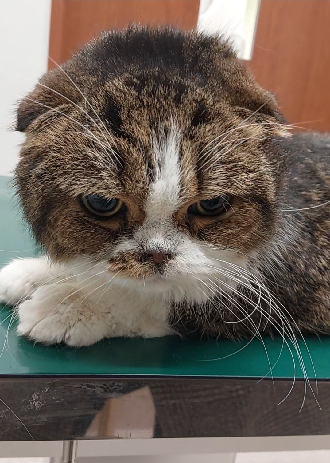 2025年11月14日に判明した心臓の周りに溜まっていたお水は比較的少量でしたが、片腎であり慢性腎臓病(腎不全)の治療上必要であったシリンジでの経口補水を止め、トモの自力の飲水のみで摂取する水を最少にした状態でどこまで心臓のお水が抜けるか、飲水量が減ったことによる腎臓の数値への影響はどの程度か等、現在経過観察中となりました